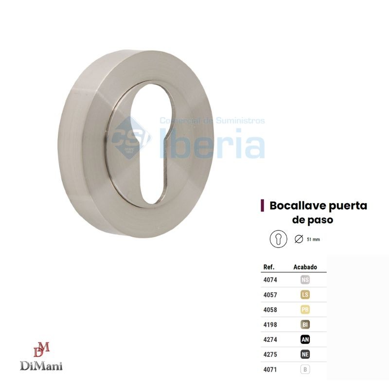 El juego de bocallave 4074K en Zamak con acabado Níquel Satinado es una solución elegante y resistente para complementar manivelas y herrajes modernos. Su diseño discreto y acabados finos lo convierten en la elección ideal para puertas de interior que requieren uniformidad estética y durabilidad.