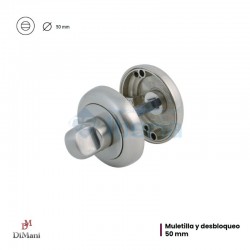 La Muletilla + Desbloqueo Ø50 Níquel Satinado 4073 combina elegancia, resistencia y funcionalidad para todo tipo de puertas interiores, especialmente en baños y aseos. Su diseño redondo y limpio, junto con el acabado níquel satinado, aporta un aspecto moderno y sofisticado que se adapta a cualquier entorno decorativo.
