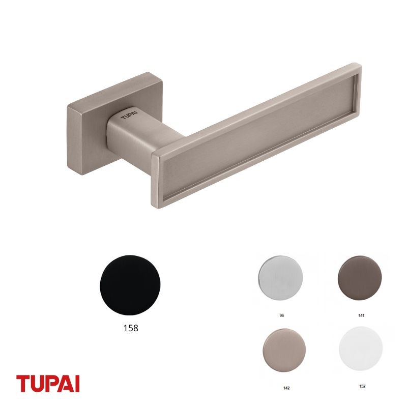 Manilla con Roseta 3039 RE-153 Negra TUPAI. Manivela moderna en acabado negro elegante, resistente y perfecta para puertas interiores.