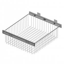 Guías correderas con extracción total y absorción automática. Carga máxima 45 kg. Adaptable para módulos de 16 a 19 mm de grosor. Incluye salva-bisagras