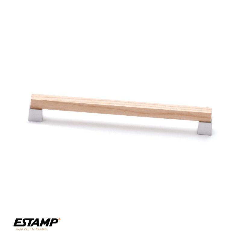 Tirador que combina la madera de fresno o haya terminada en color wengue, con bases metálicas. Una opción muy original para diversos tipos de mueble.