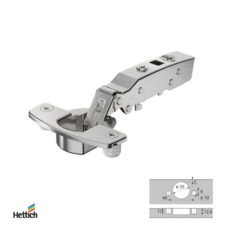 Bisagra Sensys 110° con amortiguación integrada (Sensys 8645i), Niquelado, Solapado, Ángulo de apertura 110°, TS-esquema de traladros 48 x 6 mm, montaje directo (ø 10 x 11)