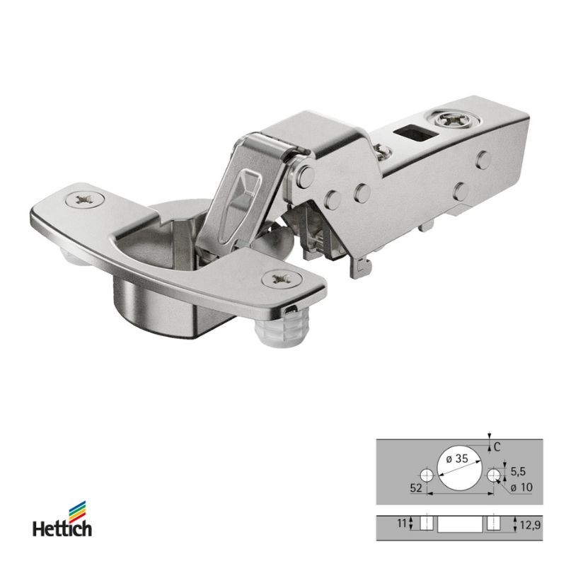 Bisagra Sensys 110° con amortiguación integrada (Sensys 8645i), Niquelado, Arremetido, Ángulo de apertura 110°, TH-esquema de taladros 52 x 5,5 mm, montaje directo (ø 10 x 11)