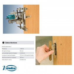 Su especial sistema de fijación permite realizar cajeados en las puertas ya colgadas sin dañar su superficie. Ajuste de medidas rápido el cual permite la realización de múltiples cajeados en un tiempo record. Posibilidad de trabajar también en posición horizontal. Para la realización de cajeados en puertas galcedas o con solape, incorpora un sistema de regulación que posibilita el centraje de la máquina. Fresas opcionales fácilmente intercambiables, que reducen al mínimo la preparación de la FC116U para el fresado del encaje para el frente de la cerradura. Equipada de origen con el útil UT16I; permite realizar con rapidez y precisión los taladros transversales para el paso de la manecilla otros elementos. Equipada de origen con fresa de cajeados de Ø 16 mm de metal duro, varilla de tope para realizar el cajeado en varias puertas a la misma altura, protectores de goma para trabajos delicados, llaves de servicio y toma para aspiración externa.