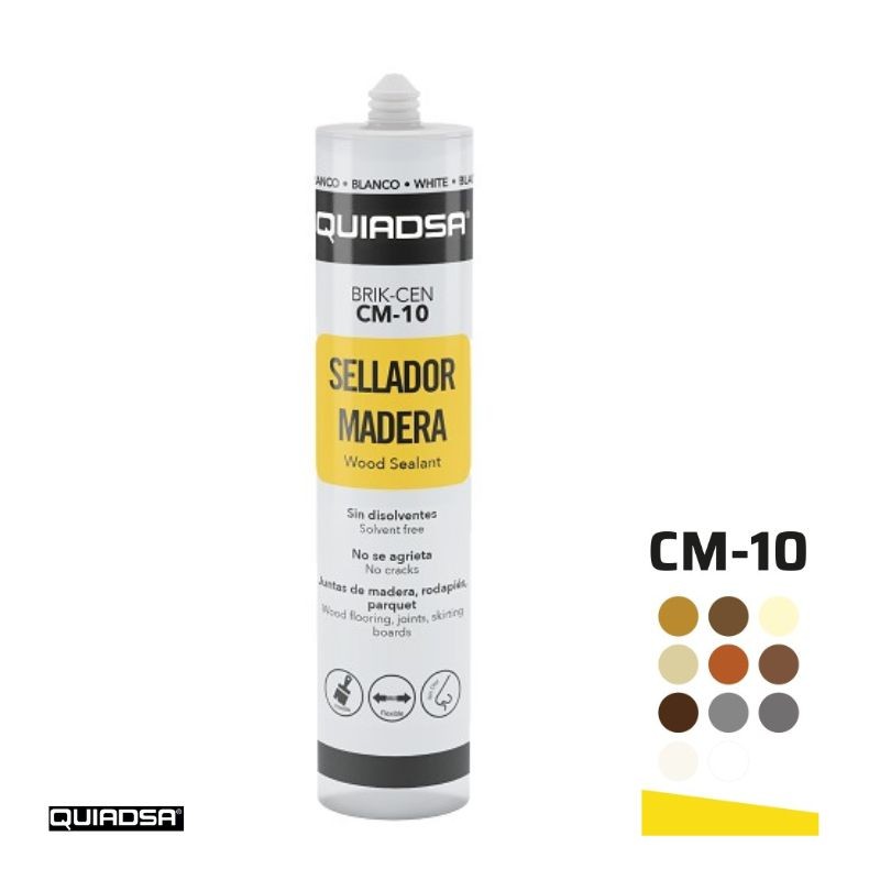 Masilla acrílica para madera 300ml BRIK CEN CM-10. Para el sellado de juntas, rodapiés con suelos de madera, ventanas, puertas, etc. Sellado en carpintería de madera, armarios empotrados.